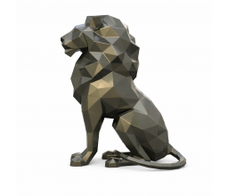 Symbole intemporel de puissance et de noblesse, le lion en position assise impose une présence majestueuse et structurante. Son design en facettes métalliques crée un relief profond et un jeu d’ombres évolutif selon la lumière.