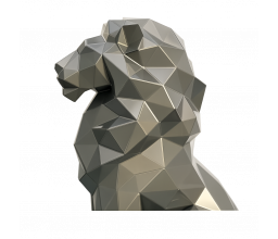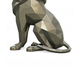 Symbole intemporel de puissance et de noblesse, le lion en position assise impose une présence majestueuse et structurante. Son design en facettes métalliques crée un relief profond et un jeu d’ombres évolutif selon la lumière.